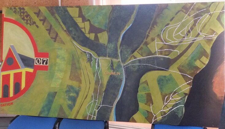 The CRUMLIN ART GROUP have been very busy on our behalf creating a fabulous mural which will eventually be installed on the Navigation site for all to see. The following pictures, however, do not show the mural in all it’s glory and as soon as we have found a suitable place to mount the mural we will post on our Facebook page and/or the website to give visitors to our fortnightly market and boot sales the opportunity to view. The mural consists of three large boards depicting the mining background of Crumlin.